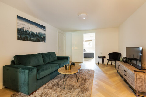 Dit prachtige en volledig gemeubileerde 4-kamer appartement is gelegen in het souterrain van dit prachtige pand. Bij binnenkomst heeft u toegang tot de ruime woonkamer. Vanuit de woonkamer heeft u aan de toegang de half open L-vormige keuken die is v.v. alle benodigde inbouwapparatuur zoals een vaatwasser, koelkast, oven, kookplaat en afzuigkap en is te vinden aan de achterzijde van het appartement. Tevens heeft u vanuit hier toegang tot een ruime tuin ca. 30m2 die is gelegen op het oosten. Aan de voorzijde van de woonkamer is een ruime slaapkamer gelegen, met hier naast een 2e kleine slaap of werkkamer. In het midden van de woning is badkamer gelegen met douche, dubbele wastafel en toilet. Tevens is er een 2e toilet en een aparte ruimte met was/droog combinatie. Kortom een prachtig nieuw appartement op een rustige locatie.