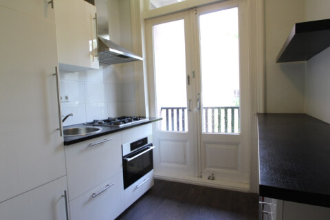 Het appartement bevindt zich op de beletage van het pand. De slaapkamer en woonkamer kun je scheiden van elkaar, door gebruik te maken van de schuifdeuren. Aan de achterzijde heeft u middels openslaande deuren toegang tot een ruim balkon die is gelegen op het oosten. De woning beschikt over een gesloten keuken aan de achterzijde en is v.v. diverse inbouwapparatuur (koelkast, vriezer, oven, gasfornuis en afzuigkap).De badkamer is voorzien van douche. Tevens is er een separaat toilet aanwezig.